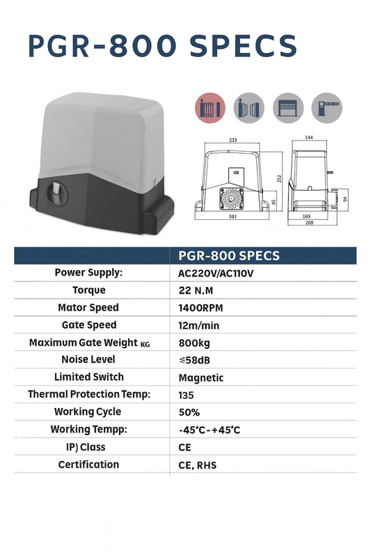 Sliding Gate Motor PGR-800 Includes Remotes And Keypad