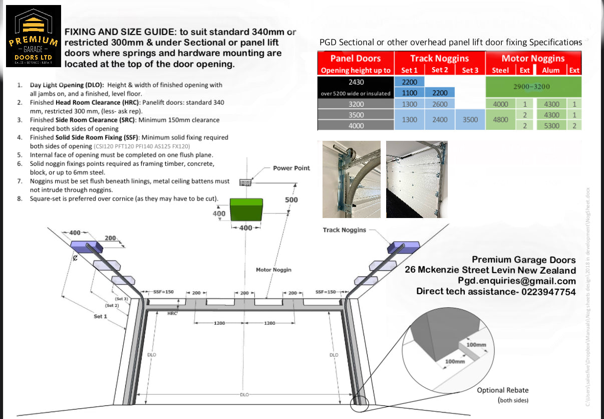 *300mm head clearance needed (from top of your opening to your lowest point ie: ceiling, truss etc) if you have less than 300mm but more than 200mm we can provide “low head room tracks”