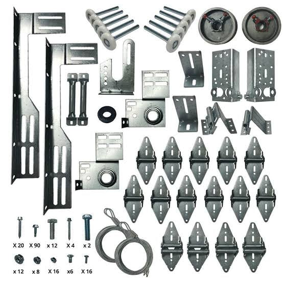 one hardware box fitting kit -one set of 360 degree weatherproof seals- one pair galvanised vertical tracks-one set galvanised horizontal tracks-one internal cross brace support- one PGD Pro-SR series S1000N motor including x2 remotes and x1 wireless wall switch (if opener selected)
