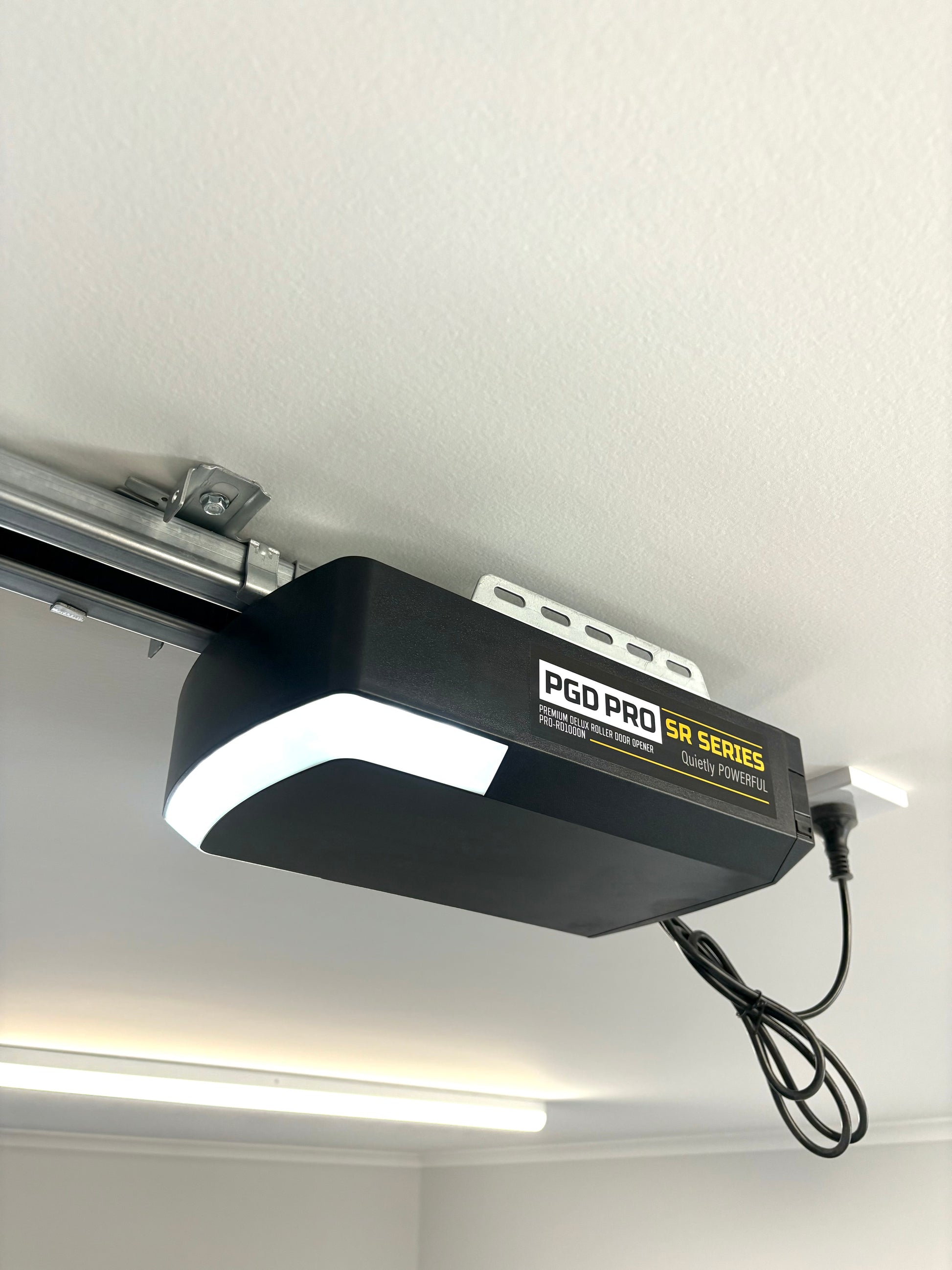 - Quiet belt drive with steel rail