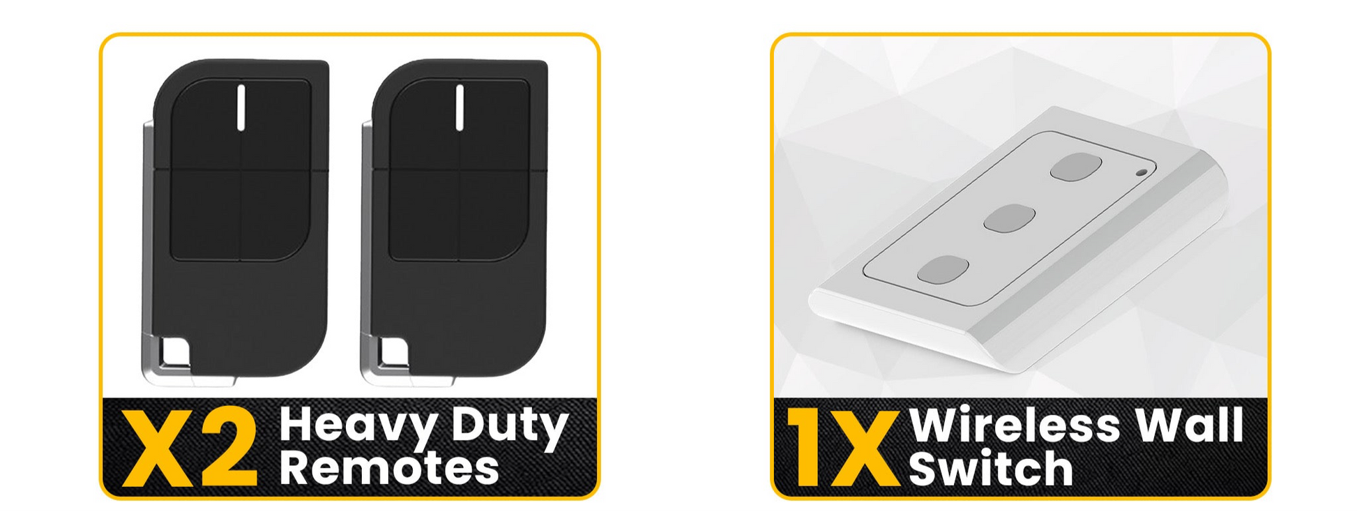 - Includes 2x remotes + wireless wall switch